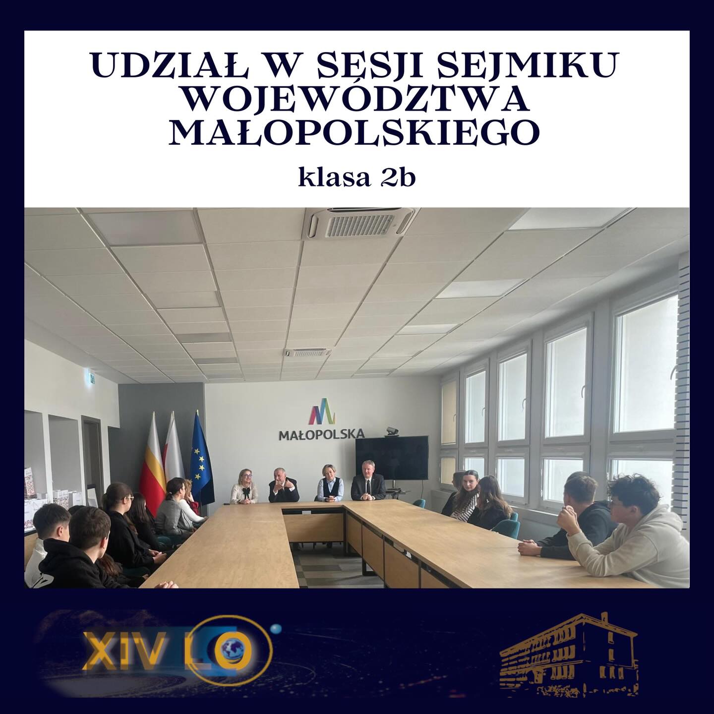 23.02 (poniedziałek) w ramach lekcji wiedzy o społeczeństwie klasa 2b wzięła udział w Sesji Sejmiku Województwa Małopolskiego 🏛️ oraz spotkała się z przedstawicielami samorządu terytorialnego